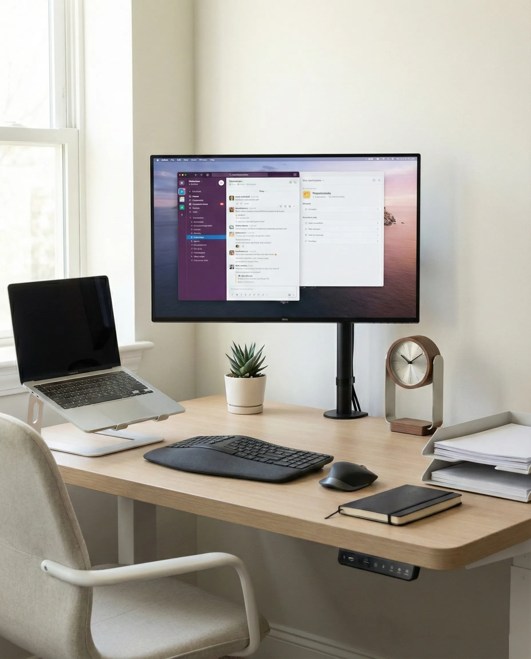Maintain clear sightlines. Your clock shouldn’t block your view of your monitor or create visual barriers. If you have multiple monitors, place the clock so it doesn’t interfere with your screen setup. Keep cables tidy if you’re using a plug-in model, nothing ruins a clean desk aesthetic faster than a tangle of cords.
