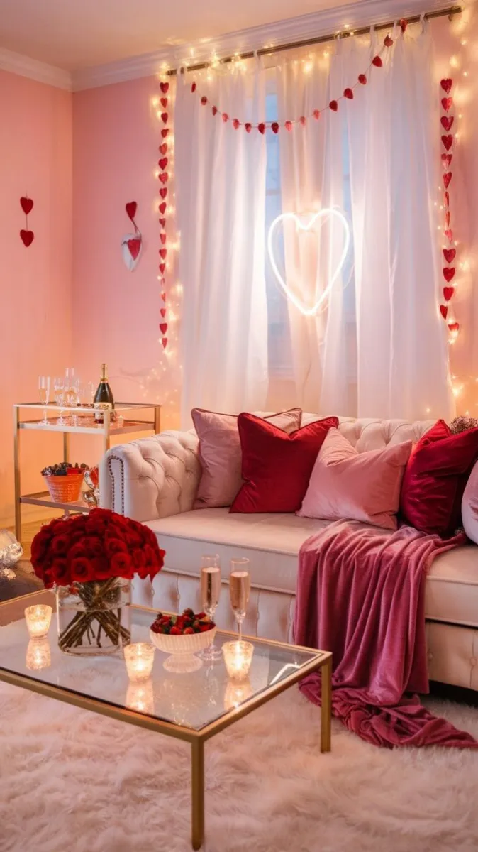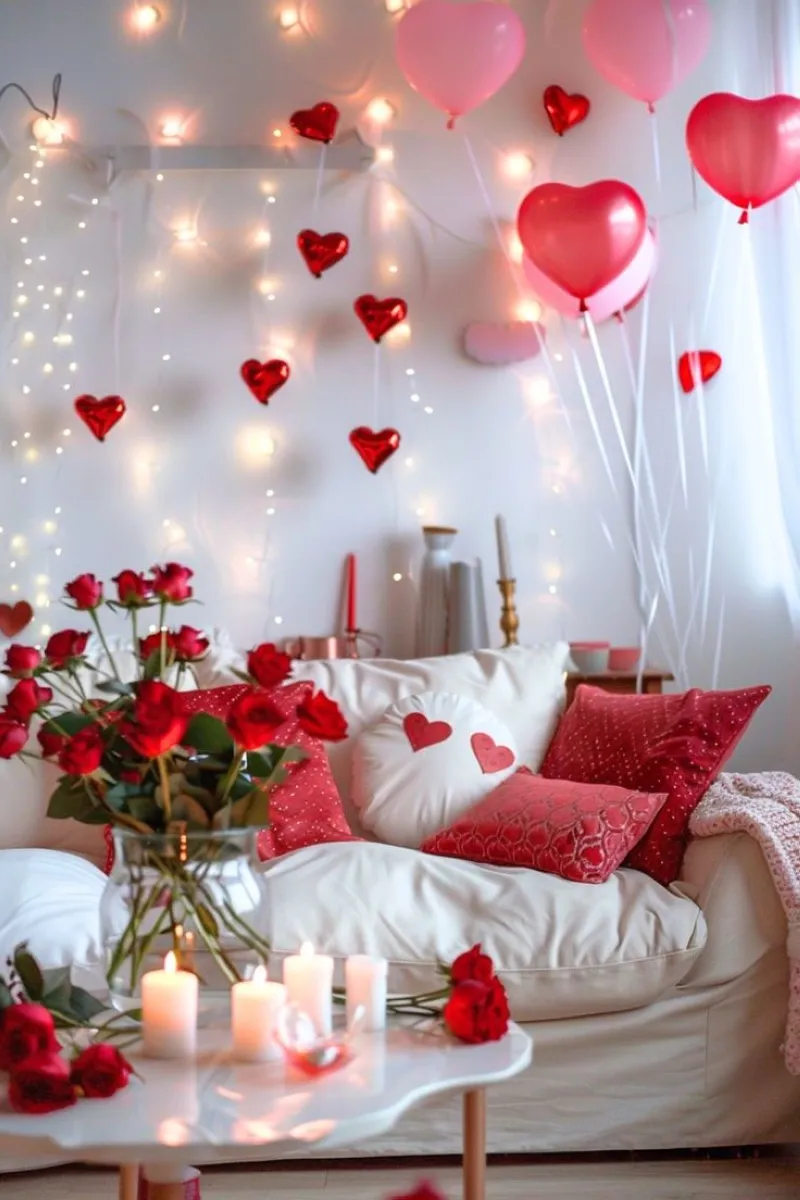 Comfortable seating areas can instantly feel more festive with themed textiles. Toss a few Valentine-themed pillows on your sofa or layer your bed with a soft, heart-patterned throw. Choose deep red, pink, and white fabrics to tie in the Valentine’s color palette.